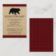 Tarjetas de llamada a cumple de bebé de leñador con un oso lindo en un fondo rústico boho de leñador de cuadros de búfalo. Puede personalizar fácilmente estas tarjetas de cumple de bebé de leñador lindas para su evento simplemente agregando sus detalles en el estilo de fuente y la redacción que prefiera.