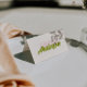 Tarjeta de lugar de boda minimalista moderna diseñada para una recepción con una mesa limpia y elegante. Esta tarjeta de acompañante doblada presenta un nombre de boda con una fuente de escritura retro divertida combinada con tipografía contemporánea. La decoración de boda en verde y rosa añade un toque fresco y elegante a tu boda. Perfecta como tarjeta de nombre de invitado personalizada para una celebración de boda chic y simple. Utiliza esta elegante tarjeta de lugar doblada para elevar la decoración de tu mesa de recepción moderna. Una tarjeta de mesa de boda contemporánea sofisticada que complementa cualquier tema de boda minimalista.