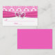 Esta tarjeta de asignación rosa y blanca con una cinta de FAUX rosada caliente y el broche de corazones de diamante con joyas coincide con las invitaciones de boda que se muestran a continuación. Si necesita cualquier otro elemento coincidente, envíe su solicitud a niteowlstudio@gmail.com.