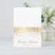 Tarjetas de lugar caprichosas y modernas con puntos de confeti dorados y letra elegante. Las tarjetas vendrán como tarjetas planas, por favor doble para formar tarjetas en forma de tienda. Esta es parte de un conjunto de bodas. Los artículos coincidentes están disponibles. Tenga en cuenta que no hay pan de oro real en el producto final.