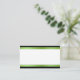 Elegantes tarjetas de recepción de bodas blancas. Una cinta de satén verde pálido en la parte superior e inferior con un borde negro, sobre un fondo blanco. Bonitas tarjetas de asiento listas para escribir a mano los nombres de los invitados. Tarjetas de número de tabla coincidentes disponibles.