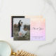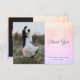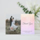 Elegante boda 'gracias'. Esta plantilla es una tarjeta de dos caras que incluye un texto de guión de tipografía con letras a mano. Este guión y el espacio en blanco le dan una sensación simple y minimalista. Personalizar este producto de tarjeta insertando sus propias fotos de boda en la parte delantera y trasera, cambiando los nombres y la fecha y editando el mensaje en la parte posterior de la tarjeta.