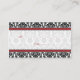 Tarjetas de matrimonio o tarjetas de acompañamiento con acentos rojos en blanco y negro con damasco. Para realizar cambios en las tarjetas, incluidos cambios en el tipo de letra, color de fuente o color de fondo, utilice la opción personalizar. El tamaño de la tarjeta es de 3,5" x 2,0" y todo lo que se requiere son algunos portatarjetas de lugar si se desea usarlas. Esta tarjeta de lugar damascal funcionará bien para un boda, cumpleaños, ducha de bodas, aniversario o posiblemente celebración de graduación de secundaria también. Cabe destacar que se ordenan en lotes de un mínimo de 100.