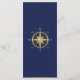 Tarjetas de menú boda náutico azul con brújula dorada y texto de personalizable