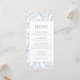 Elegante y moderno menú boda de estilo floral azul polvoriento de inspiración francesa.