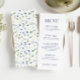 Tarjetas de menú boda floral azul verde