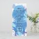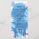 ¿Te encantan estas noches de verano? El diseño es moderno y fresco, con cocoteros sobre un fondo azul acuático y violeta que recuerda a los cielos de la noche como el sol ya se ha puesto. Las tarjetas de menú de boda con temática tropical son bodas de viaje, al aire libre o de destino.