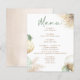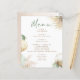 Tarjetas de menú elegantes boho con hierba de pampas beige, globos verdes salvia y dorados