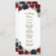 Tarjetas de menú de boda bohemio rústico azul marino y borgoña: presentan rosas y peonías elegantes en acuarela en varios tonos de Marsala, borgoña, merlot y azul marino con follaje elegante. Hay toques de ramitas doradas en las flores y el follaje. La disposición de la fuente muestra colores de tinta dorada y bronce impresos para decorar. Ver la colección coincidente en esta página para ver todos los productos coincidentes.