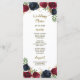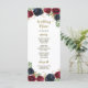 Tarjetas de menú de boda boho rústicas azul marino borgoña - presentan elegantes rosas y peonías de acuarela en varios tonos de Marsala, borgoña, merlot y azul marino con vegetación elegante. Hay toques de ramitas de oro en todas las flores y vegetación. La disposición de la fuente muestra colores de tinta dorada y bronce impresos para decoración adicional. Ver la colección coincidente en esta página para ver todos los productos coincidentes.