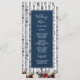 Tarjetas de menú de boda con árboles de abedul en azul marino y burgundy: presentan varios árboles de abedul de acuarela con rosas, peonías y vegetación en tonos de rosa pálido, Marsala, burgundy, azul marino y más.
