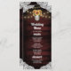 Tarjetas de menú de boda de girasol con frasco de albañil y encaje de madera: presentan un fondo de madera de granero rojo intenso recortado con encaje y decorado con luces centelleantes de cuerda de color cálido. El diseño también presenta un ramo de girasoles dentro de un frasco de albañil que puedes personalizar con las iniciales de tu elección. La parte posterior también presenta el mismo fondo rústico de campo para que coincida con la parte delantera.