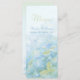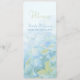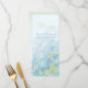 Tarjetas de menú verticales hidraangea boda en tonos azules y verde fresco. Personalice estas tarjetas de menú con sus propios nombres y palabras de menú. © Fotografía y diseño de Sarah Trett para www.mylittleedenweddings.com