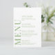 Aumente el encanto de su romántica celebración boda moderna con esta sofisticada y pulida carta. Con un intrincado patrón adornado con delicadas flores rosadas con hojas verdes, este hermoso diseño se eleva con personalización, mostrando el monograma de la novia y el novio en la parte de atrás.