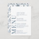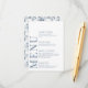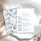 Aumente el encanto de su romántica celebración boda moderna con esta sofisticada y pulida carta. Con un intrincado patrón adornado con delicadas flores azules y grises polvorientas, este hermoso diseño se eleva con personalización, mostrando los nombres de la novia y el novio en la parte de atrás.