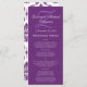 Cartas de menú Matrimonio morado y blanco Damasco con el diseño del logotipo del Monograma de Elke Clarke ©2010. Personalizar con tu color de fondo y toda tu información personal para crear una carta de menú simple pero sofisticada para tu lugar en la recepción de bodas.