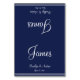 Tarjetas de mesa boda náutico azul con texto de personalizable