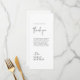 Esta moderna tarjeta de moda en blanco y negro es perfecta para una simple recepción nupcial. El minimalista diseño boho presenta una tipografía bohemia rústica única y elegante en blanco y negro minimalista. Coloque estas tarjetas en el lugar donde cada uno de sus invitados se encuentre en la recepción de su boda. Personaliza la tarjeta con tus nombres y un mensaje especial de agradecimiento.