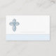El bautismo coloca las cartas con la cruz azul bonito en un fondo de punto azul en el otro lado con una línea para tu nombre escrito a mano cuando lleguen. Simplemente coloque la tarjeta en la mesa.