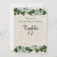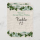 tarjetas de mesa de boda irlandesa elegantes sobre fondo de lino con tréboles y cintas. Tarjeta de mesa elegante o plantilla de papelería para fiesta con tema irlandés. Fiesta del día de San Patricio también.