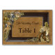 Boda gótica Steampunk - Oro y latón en textura de gamuza con un marco de cuero oscuro - tarjetas de número y nombre para cada mesa
