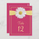 Tarjetas con el número de la mesa de la margarita Shasta rosa y amarilla canaria para su boda, bat mitzvah, dulce 16 cumpleaños u otras ocasiones especiales. Cambie el número de la tabla, agregue una tarjeta a su carrito, luego cambie el número de la tabla de nuevo y agregue la siguiente a su carrito. Repita el proceso hasta que tenga todas las tarjetas de tabla que necesite. Para cambiar el número, sólo tiene que escribirlo en el cuadro bajo personalizarlo. Si desea realizar otros cambios en el texto, incluidos los cambios en el tipo de letra, el color de la fuente, el tamaño de la fuente o la ubicación del texto, utilice la opción personalizar it. Si desea una opción frontal y posterior, ordene dos de cada uno y luego colóquelos juntos.