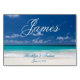 Tarjeta de mesa con texto de personalizable en la playa azul
