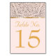 Tarjetas de números de la mesa dorada y rosada de moda para su boda bohemio. El dorado falso de aspecto metalizado mandala decora la parte superior bordeada por un falso borde metálico dorado a juego. Las letras de color oro de coordenadas son la tabla No. y el número personalizado contra el fondo rosa de color. Idéntico en el otro lado. Agregue cada número de tabla por separado a su carrito de compras Zazzle.