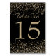 Elegante color de champán dorado y tarjetas de números de mesa negras para su elegante boda - Confeti de oro de Chaux champagne y puntos antiguos de purpurina dorado se reparten por los bordes superior e inferior. Las letras de color de coordenadas dicen 'Tabla No.' con un número personalizado contra fondo negro para hacer que los puntos sean realmente pop. Idéntico en el otro lado. Personalizar cada número de tabla por separado y añada a su carrito de compras Zazzle.