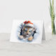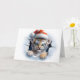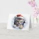 Dale a tu saludo de Navidad un toque salvaje con este retrato de animales navideños que presenta un lindo tigre bebé con un sombrero de Santa en la parte delantera, fondo de copos de nieve azules en el interior y un dulce saludo de "Feliz Navidad" en una fuente nevada en el interior. ¡Tarjeta de saludo perfecta para amantes de los animales y la vida silvestre! Solo de Yips N' Howls.