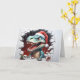Dale a tu saludo de Navidad un toque salvaje con este retrato de animales de Navidad con un bebé dinosaurio lindo con sombrero de Santa en la parte delantera, fondo de copos de nieve azules en el interior y un dulce saludo de "Feliz Navidad" en una fuente nevada en el interior. ¡Tarjeta de saludo perfecta para amantes de los animales y la vida silvestre! Solo de Yips N 'Howls.