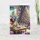 Pase al encanto acogedor de una sala de estar bellamente decorada para las fiestas. Esta tarjeta en blanco captura la calidez de la temporada con un árbol de Navidad brillante, medias colgadas junto a la chimenea y luces suaves que proyectan un brillo acogedor. Perfecta para escribir y enviar deseos sinceros y difundir alegría navideña a familiares y amigos.