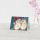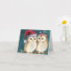Una pareja de búhos en una rama de árbol con un sombrero de Santa. Tarjeta de Navidad muy linda que es perfecta para los amantes de los búhos en tu vida.