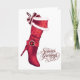 Tarjetas de Navidad divertidas y elegantes con media roja de Navidad. Puedes agregar tu mensaje en el interior, o dejarlas en blanco para agregar tu mensaje escrito a mano cuando lleguen.