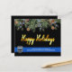 Envía saludos navideños felices a amigos, empresarios, compañeros de los departamentos de aplicación de la ley y a tu comunidad con esta tarjeta única de Navidades del Departamento de Policía de la Línea Azul - Negro y azul moderno con hojas y bayas huecas y un guión de oro elegante. Personaliza con el logo, mensaje y departamento del departamento de policía . DERECHOS RESERVADOS © 2020 Judy Burrows, Black Dog Art - Todos los derechos reservados. Tarjetas de Navidad del Departamento de Policía Presupuestaria