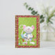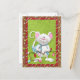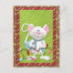 Navidades del ratón saludando tarjetas y postales con un adorable ratón blanco con una cadena de luces de árbol de vacaciones.