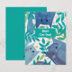 Ilustración azul y verde con gatos y follaje. Feliz día del padre para papás gatos. ¡Feliz día del padre gato!