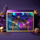 Tarjetas de Navidad Pintadas de Morado Turquesa Az