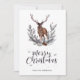 Navidades de venado rojo color agua personalizado cartas con un título escrito a mano y con una cubierta de nieve con medio vegetación. Personaliza fácilmente estas hermosas tarjetas de Navidades acuarelas con tu nombre familiar y texto.