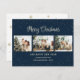 Elegantes tarjetas de Navidades de fotos azules con un collage de fotos y caída de nieve en un fondo azul. Personaliza fácilmente esta tarjeta de Navidades azules con tus imágenes favoritas, un nombre de familia y un texto.