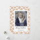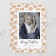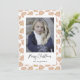 Cartas de Navidades de fotos rosadas con adornos navideños en forma de corazón rosado. Personaliza fácilmente estas tarjetas de Navidades de fotos con tu imagen y un nombre de familia.