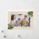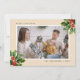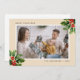 Elegantes tarjetas de Navidades de fotos de color personalizado con una foto de champán decorada con ilustraciones de color de agua de color holly. Personalice fácilmente estas elegantes tarjetas de fotos navideñas acuarelas con su imagen y texto.