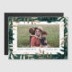 Una elegante tarjeta de festividad fotográfica con ramas de pino dibujadas a mano en una paleta festiva de Relieve metalizado dorado y color verde diseñada por Stacey Meacham. La parte trasera es magnética.