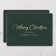 Personalizado cartas de Navidades de negocios de Relieve metalizado verde y oro falso con título escrito a mano. Personalice fácilmente estas tarjetas de Navidades de negocios de color verde oscuro y oro con el nombre de su empresa.