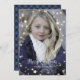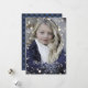 Personalizado azul búfalo trenzado tarjetas de Navidades de foto con nieve cayendo y brillantes estrellas en un hermoso fondo azul de manto búfalo. Personaliza fácilmente estas tarjetas de Navidades de fotos azules con tu foto, texto y nombre de familia. Crea una foto mágica tarjetas navideñas para tu familia y amigos este invierno. Personalizado Feliz feriado disponible en la herramienta de personalización (hacer visible).
