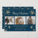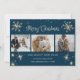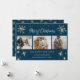 Tarjetas de Navidades de fotos azul personalizado con copos de nieve y estrellas en la parte delantera y brillantes copos de nieve en la parte trasera. Personaliza fácilmente estas tarjetas de Navidades de fotos azules con tus imágenes, texto y un nombre de familia.