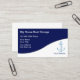 Tarjetas de negocio de almacenamiento de barcos con ancla de barco y fondo azul y blanco, junto con un excelente diseño de texto que puedes personalizar ahora. Las mejores tarjetas de negocio diseñadas como una plantilla de tarjeta de negocio para una instalación de almacenamiento de barcos, amarres para barcos o marina.