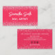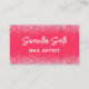 Tarjeta de visita para un pintor de uñas con purpurina falso y fondo rosado caliente. El propietario del salón o el hogar clava las tarjetas de cliente de negocios con estilo.