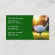 Tarjetas de visita para un negocio de golf diseñado con un gráfico genial de una pelota de golf en un armario T de golf con una hermosa luz matutina en el campo de golf y una sencilla plantilla editable que puede personalizar en línea.