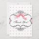 Esta es una nota de agradecimiento de tarjeta plana, que se crea en stock de invitación. Debido a esto, si pides estas notas junto con tus invitaciones, el número total se agrega para darte un mayor bono de volumen! Esta nota de agradecimiento se coordina con el Baby Shower Invitation y cuenta con elegantes movimientos de copas franceses, puntos rosas y verdes en el fondo, una cinta rodada y un hermoso arco rosado pintado a mano. Todo hecho con obras de arte originales de Audrey Jeanne Roberts. El resultado es un bonito conjunto contemporáneo para bebés. Al revés hay el mismo patrón de puntos y un corchete que revela un lugar para la foto de su bebé. TAMBIÉN PODRÍAS DISFRUTAR: